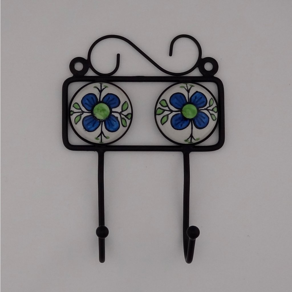 Kovový dvojvěšák s ručně malovanými keramickými středy.