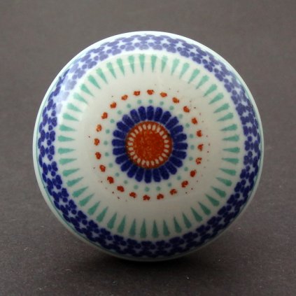 Keramická nábytková úchytka bílá s potiskem; velikost 4cm, tvar LENTILKA