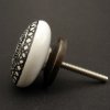 Keramická nábytková bílá úchytka s černým potiskem. Tvar LENTILKA:)