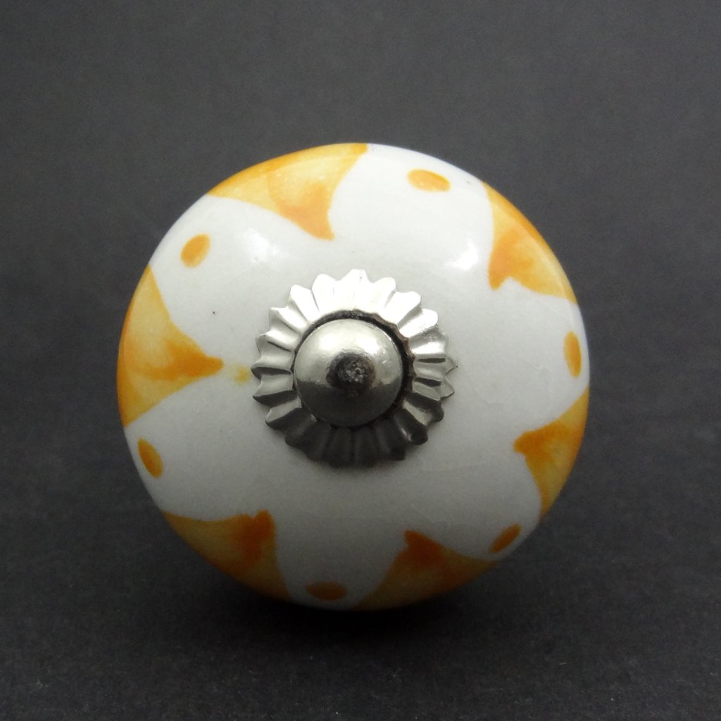 Keramická nábytková úchytka s ručně malovanými oranžovými srdíčky.