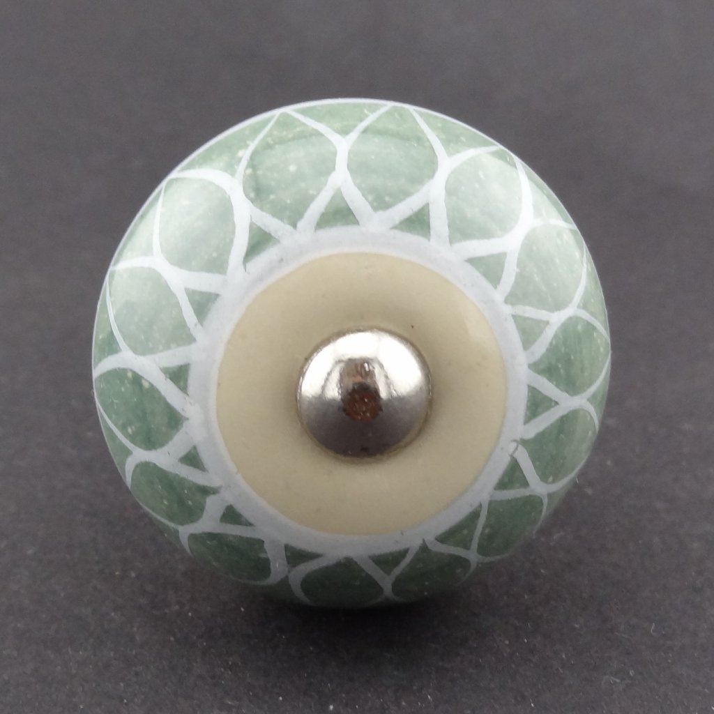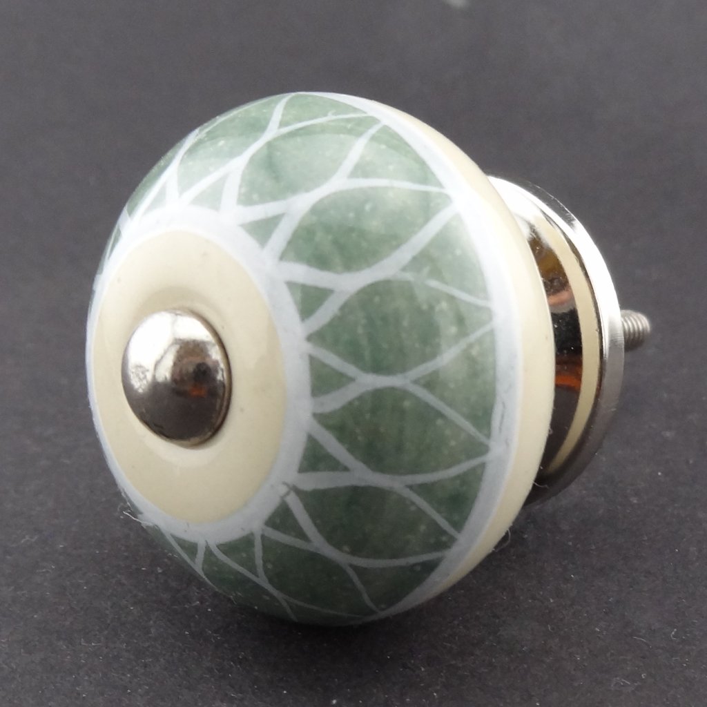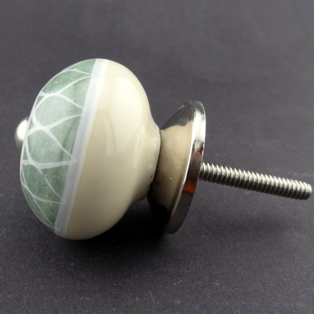 Keramická nábytková úchytka krémová s šalvějovým a bílým vzorem.