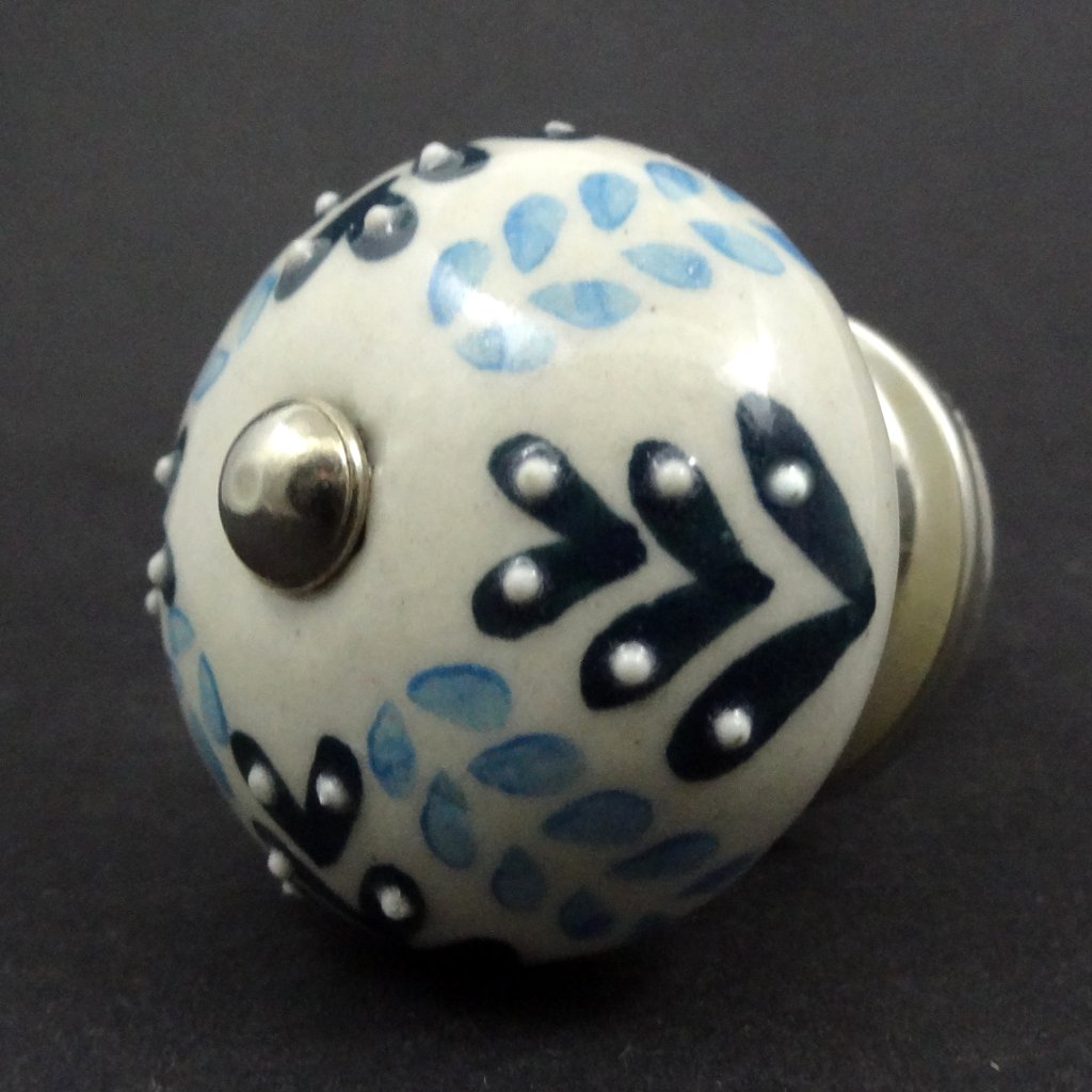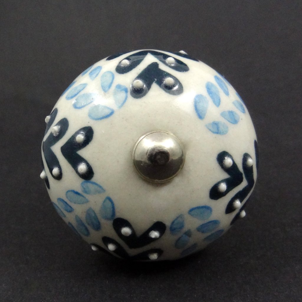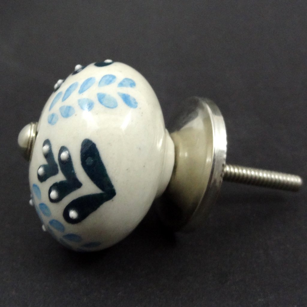 Keramická nábytková úchytka s ručně malovaným vzorem na ecru podkladu.