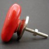 Keramická nábytková úchytka tvaru červeného srdíčka.