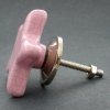 Keramická nábytková úchytka tvaru růžové hvězdy s crackle povrchem.