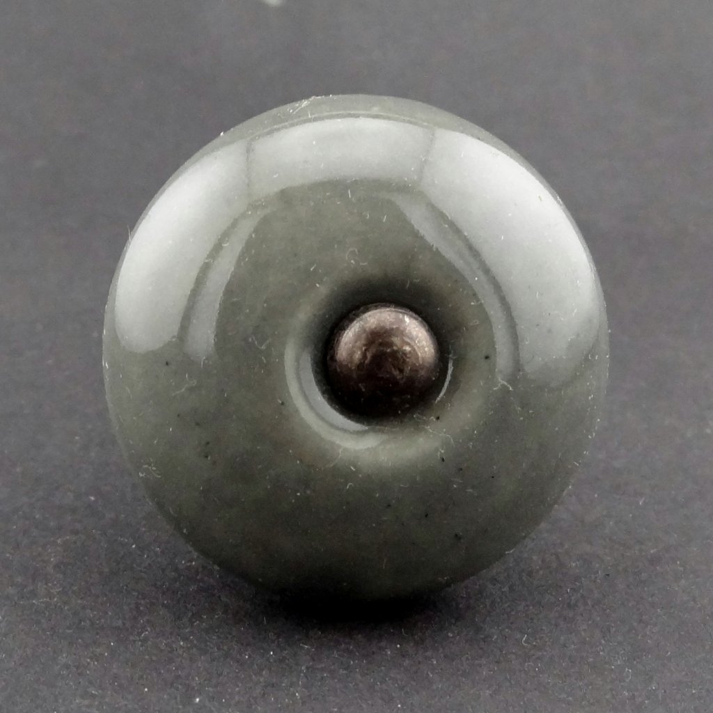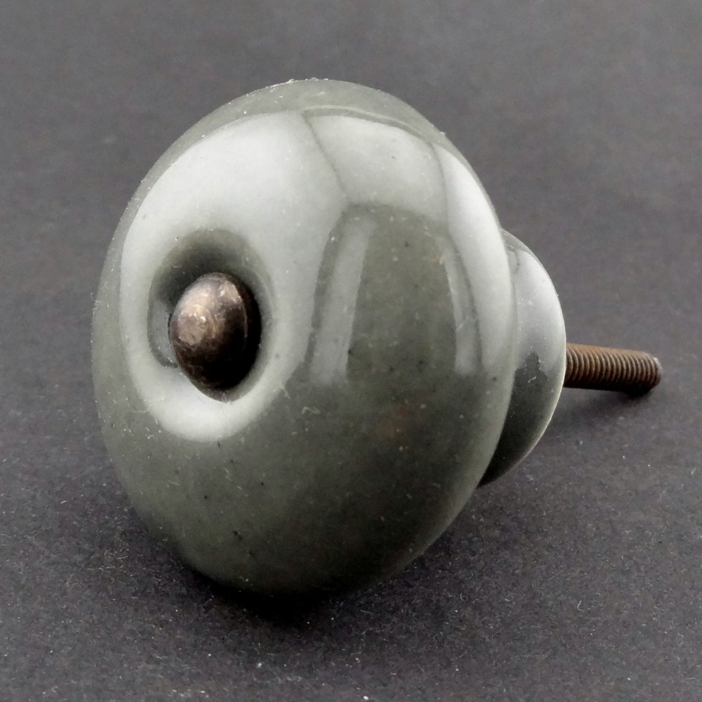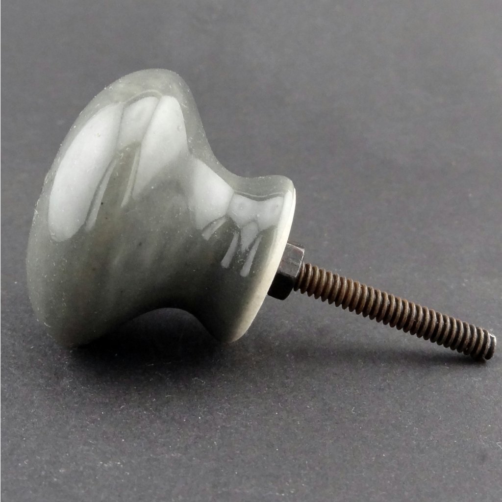 Keramická nábytková úchytka ladných tvarů; hnědošedá glazura.