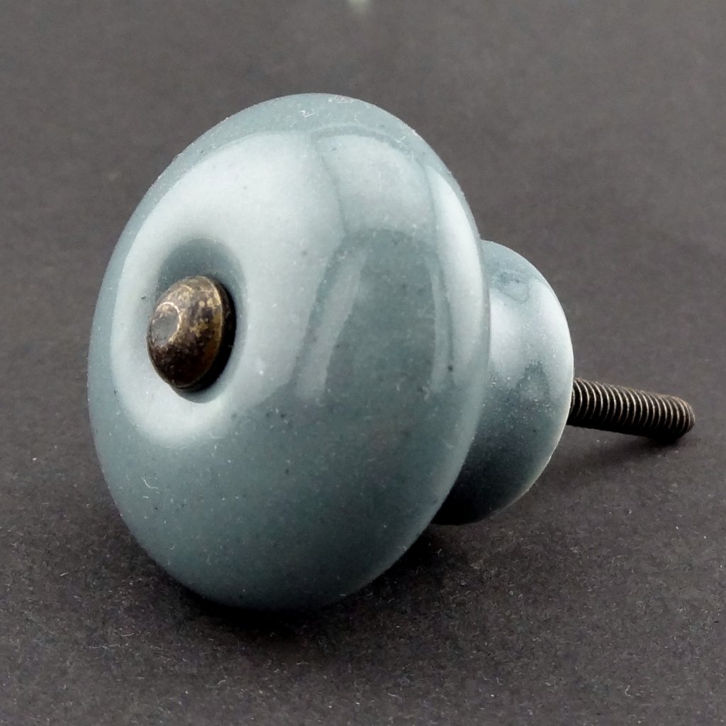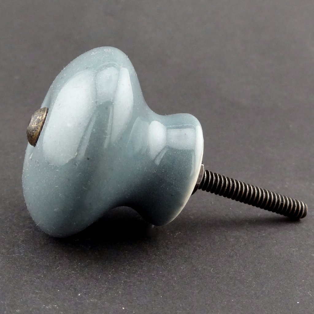 Keramická nábytková úchytka ladných tvarů; šedá glazura.