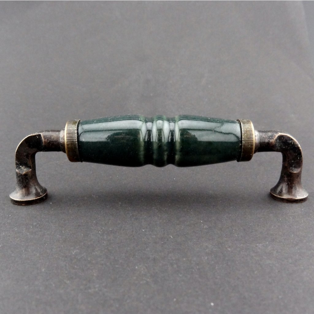 Kovové madlo KLASIK s keramickým středem v barvě temně zelené. Krásná madla v mnoha odstínech pro vaši radost z barev.