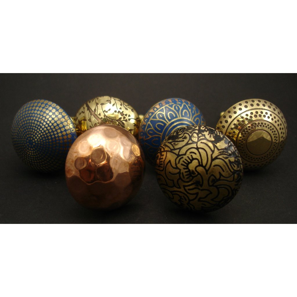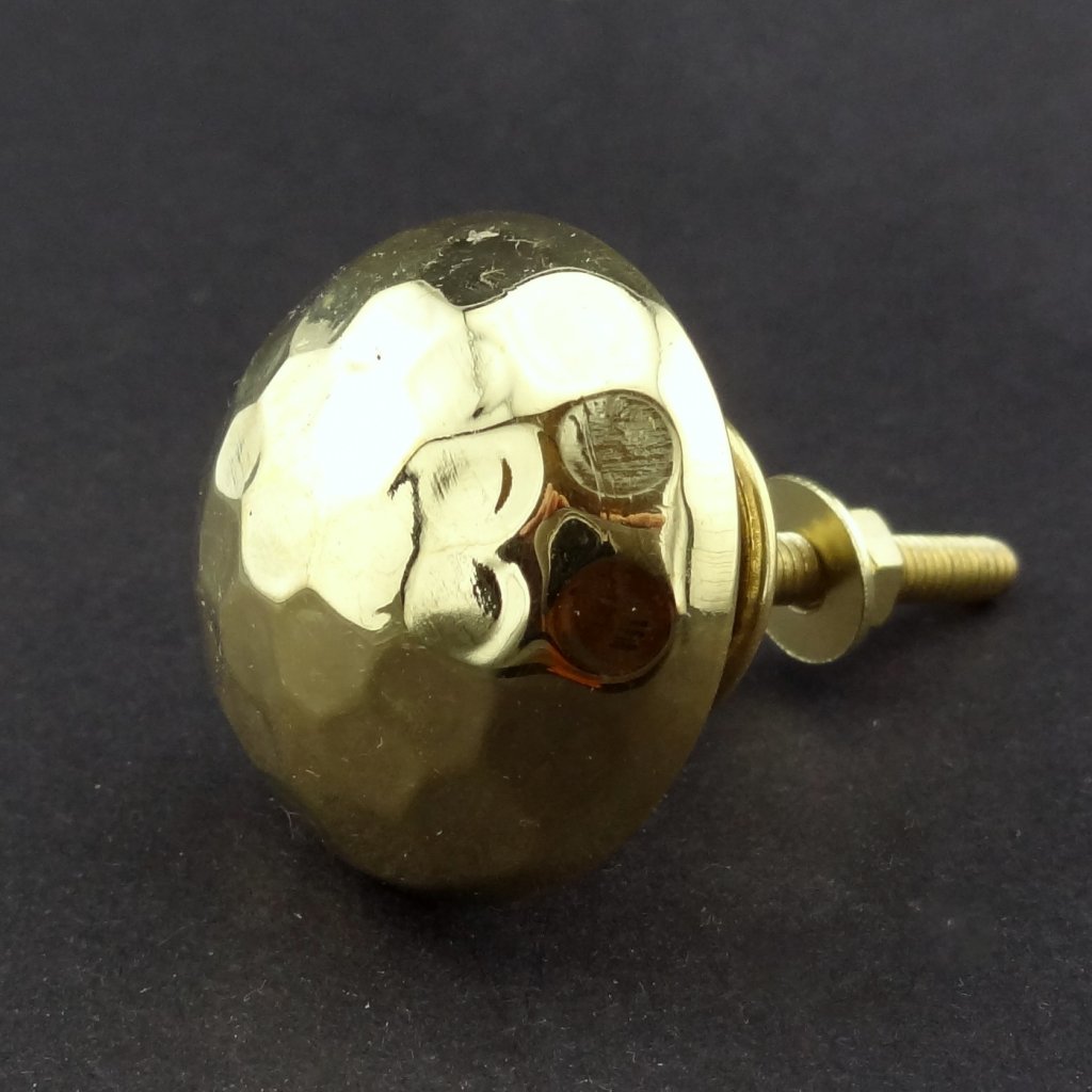Nábytkový mosazný úchyt s tepaným vzorem.