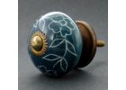 Keramická nábytková úchytka-vzor Pomněnka s hnědomodrými kvítky, velikost 4cm