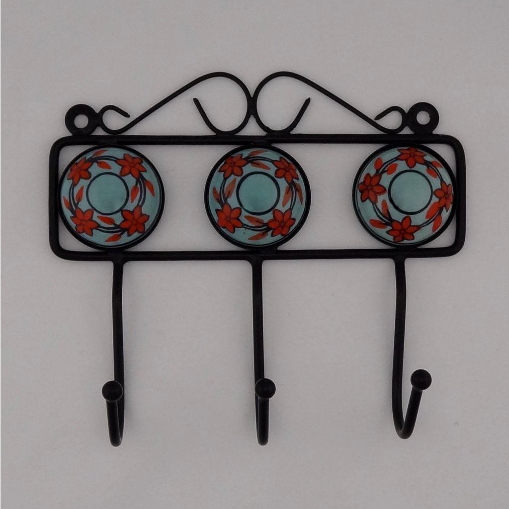 Kovový trojvěšák s ručně malovanými keramickými středy.